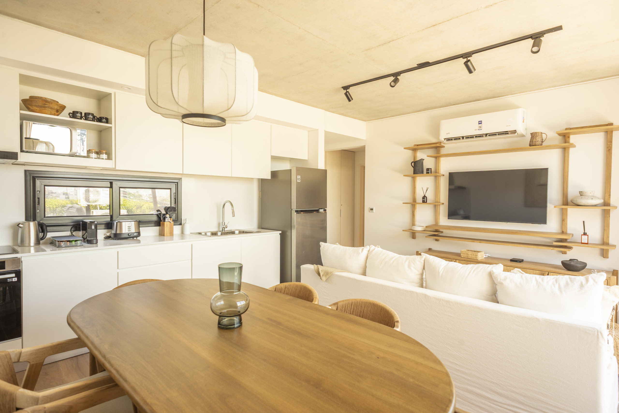 La cocina americana, de vitrocerámica, está equipada con nevera, microondas, horno, congelador, vajilla/cubertería, utensilios/cocina, cafetera, tostadora y hervidor de agua.