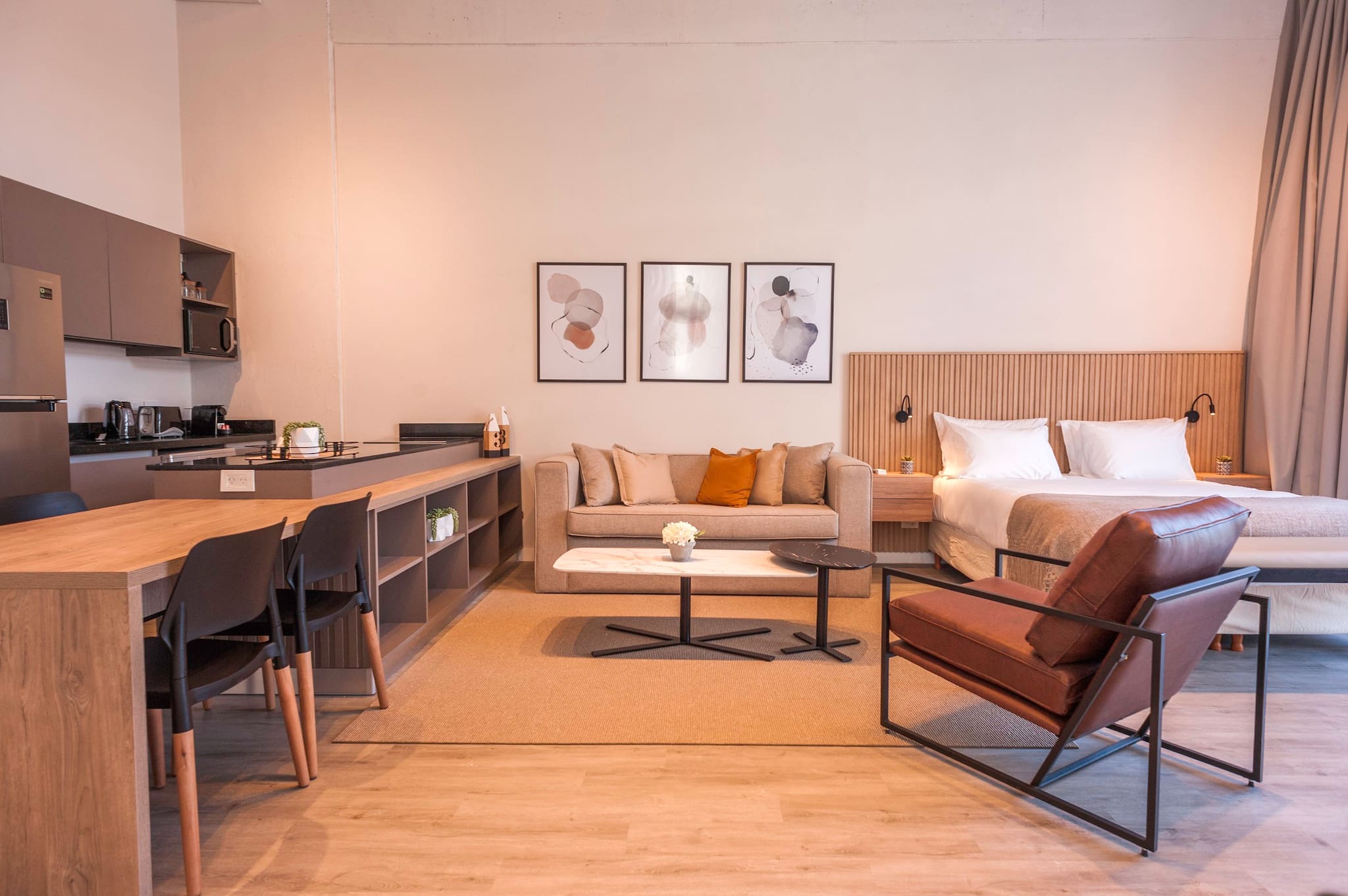 Viví y Disfrutá Pilar en este hermoso departamento ubicado en el complejo Work & Live. Es un amplio monoambiente que está totalmente equipado para estadías largas y trabajo remoto. Apenas ingreses te sentirás en tu casa y podrás disfrutar su amplio balcón con muebles de exterior. Para tu total comodidad el Studio cuenta una cocina amplia totalmente equipada con electrodomésticos premium, vajilla completa y todos los utensilios para disfrutar cocinar.