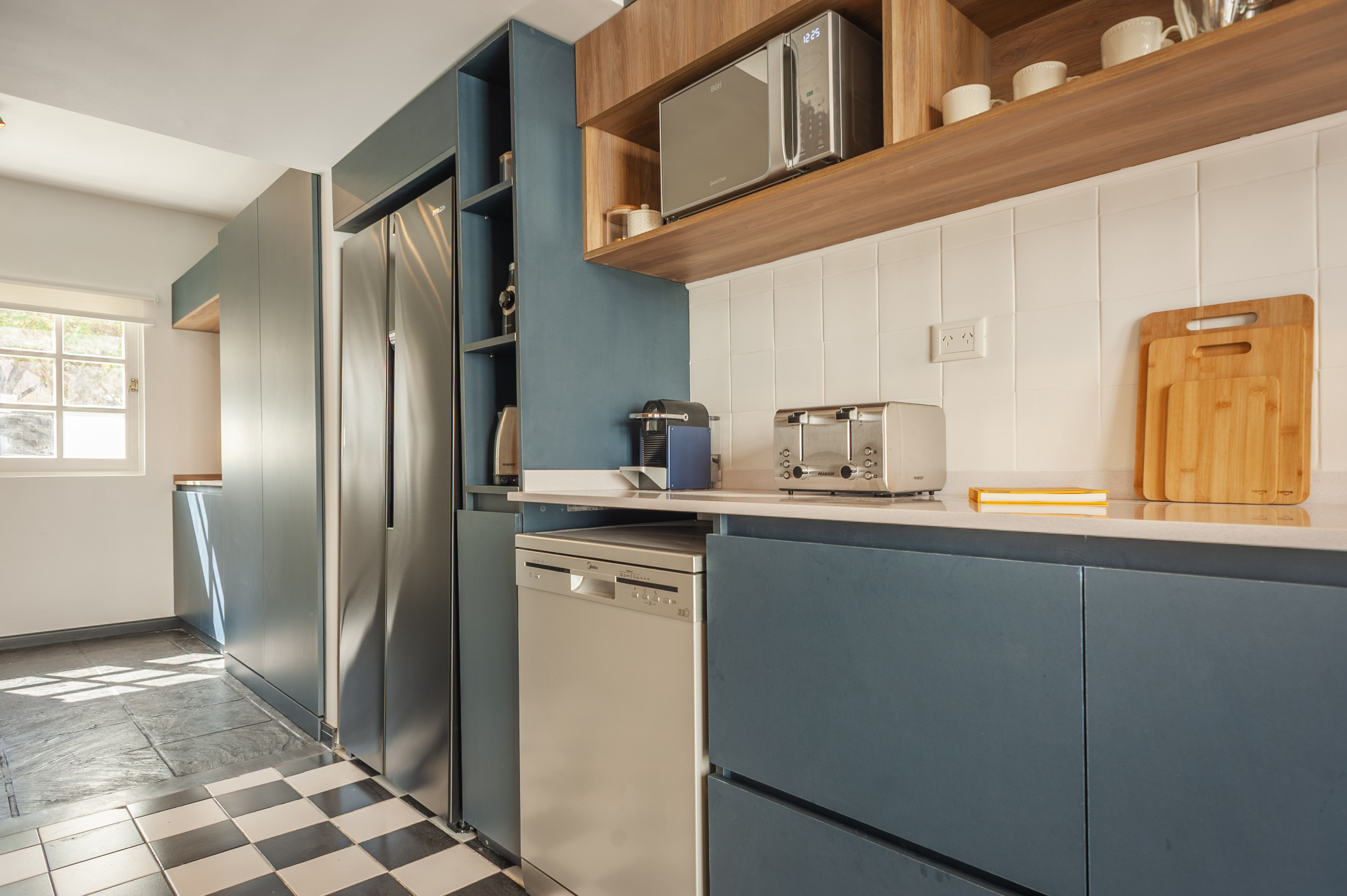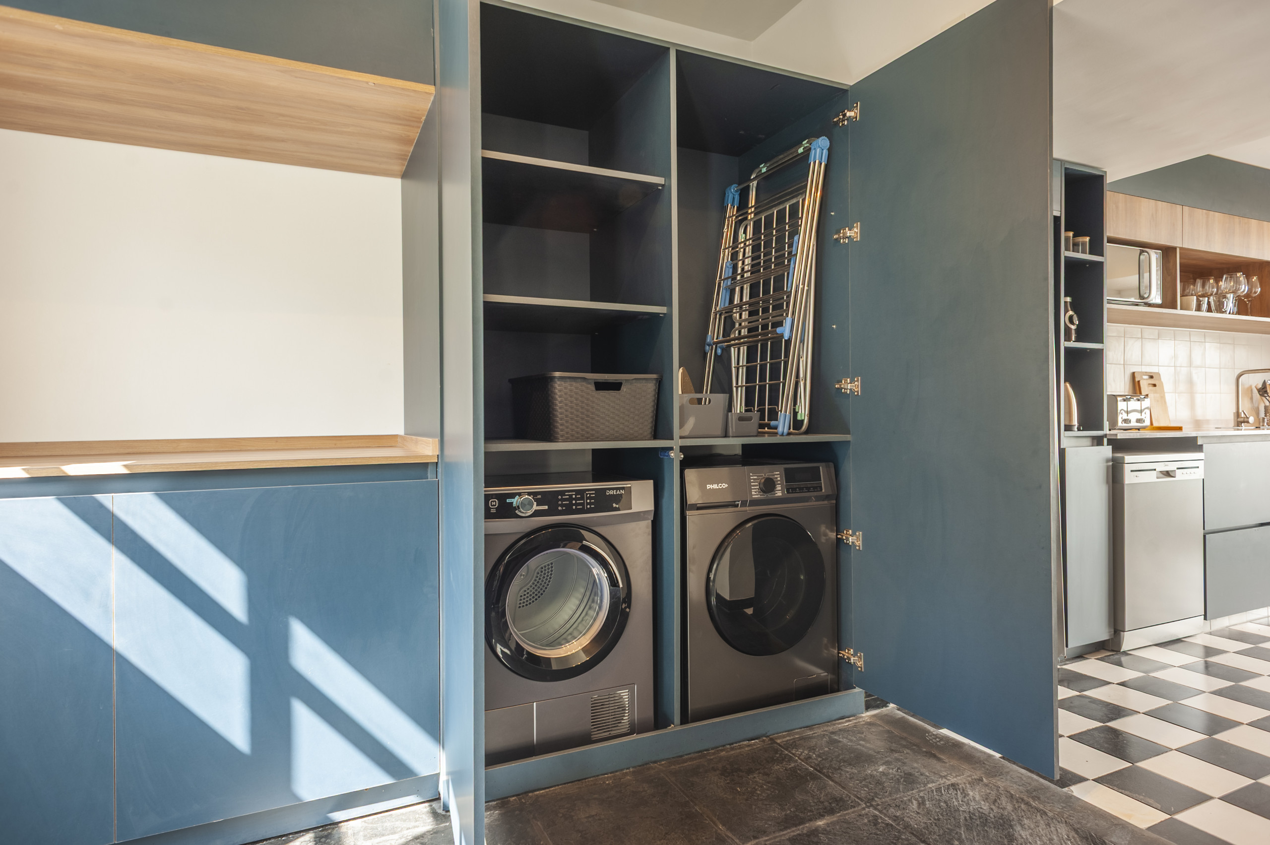 A cozinha americana, de vitrocerâmica, está equipada com geladeira, micro-ondas, forno, congelador, máquina de lavar louça, louça/talheres, utensílios/cozinha, cafeteira, torradeira e jarro elétrico.