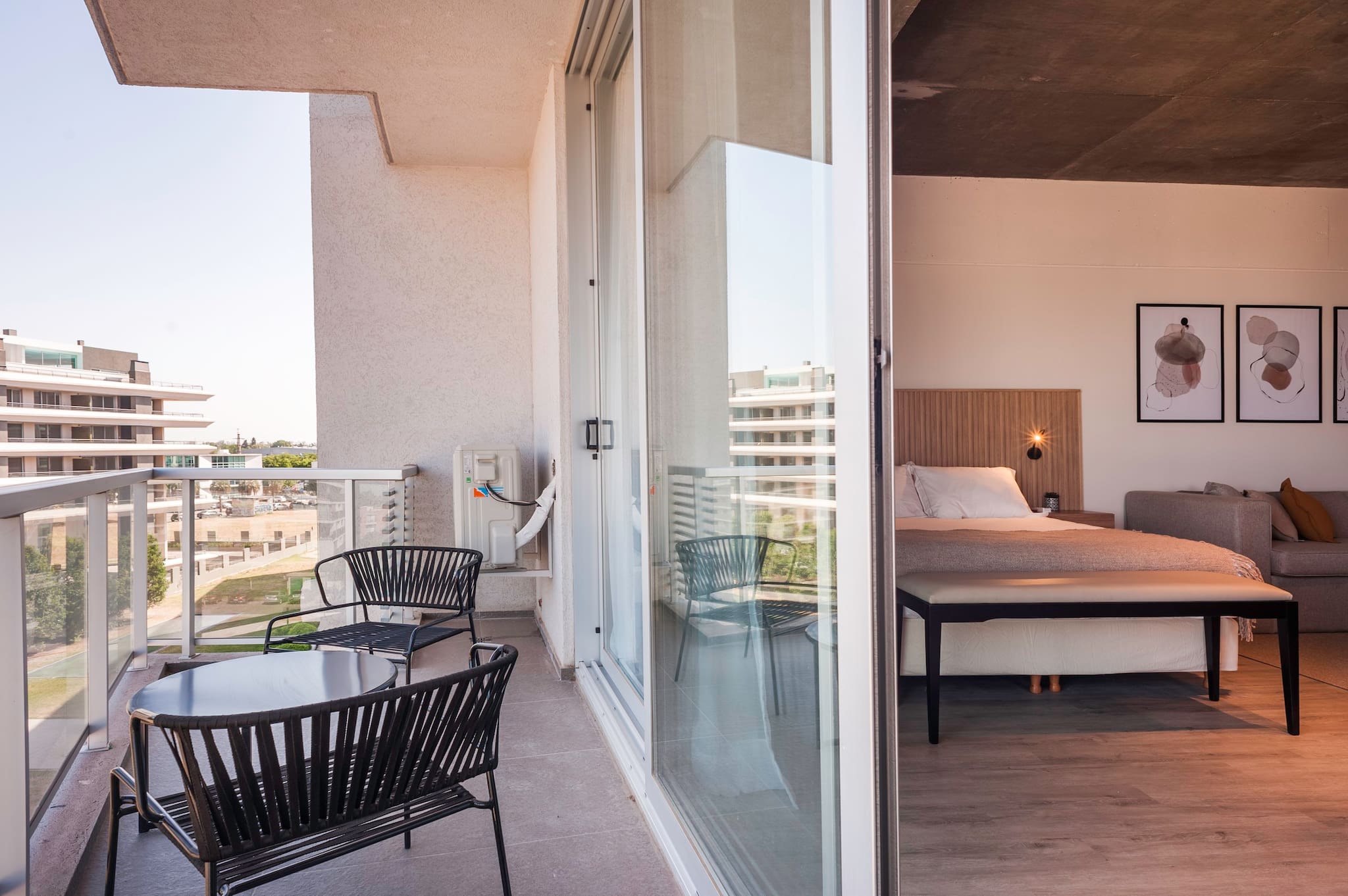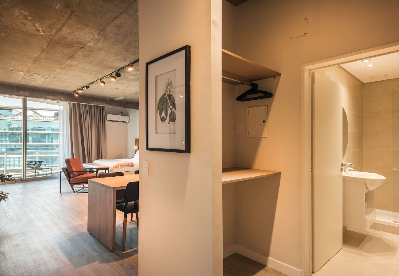 Live and Enjoy Pilar in this beautiful apartment located in the Work & Live complex. It is a spacious studio apartment that is fully equipped for long stays and remote working. As soon as you enter you will feel at home and to highlight its large balcony with outdoor furniture to enjoy breakfast in the morning or an Argentinean wine in the evening. For your total comfort, the Studio has a large kitchen fully equipped with premium appliances, complete dishes and all the utensils to enjoy cooking.